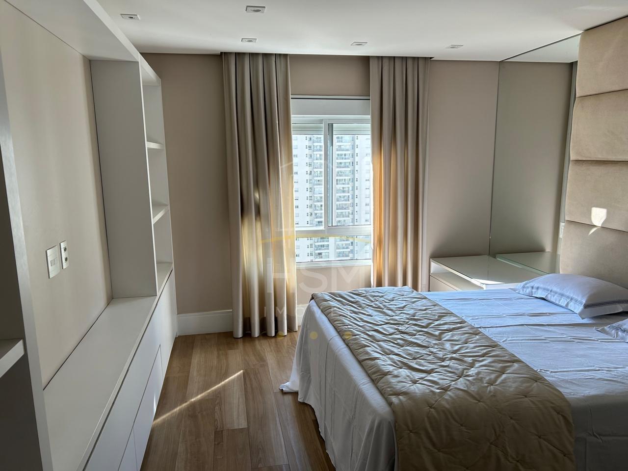 Excelente apartamento residencial com 237 m² de área interna. São 4 quartos, sendo 4 suítes, 2 salas e 5 banheiros, além de 1 varanda gourmet. Conta com 4 vagas de garagem, 2 elevadores e 25 andares, com 4 unidades por andar. Detalhes de acabamento: piso laminado, armários na cozinha e nos quartos, closet, box de banheiro e lavabo.